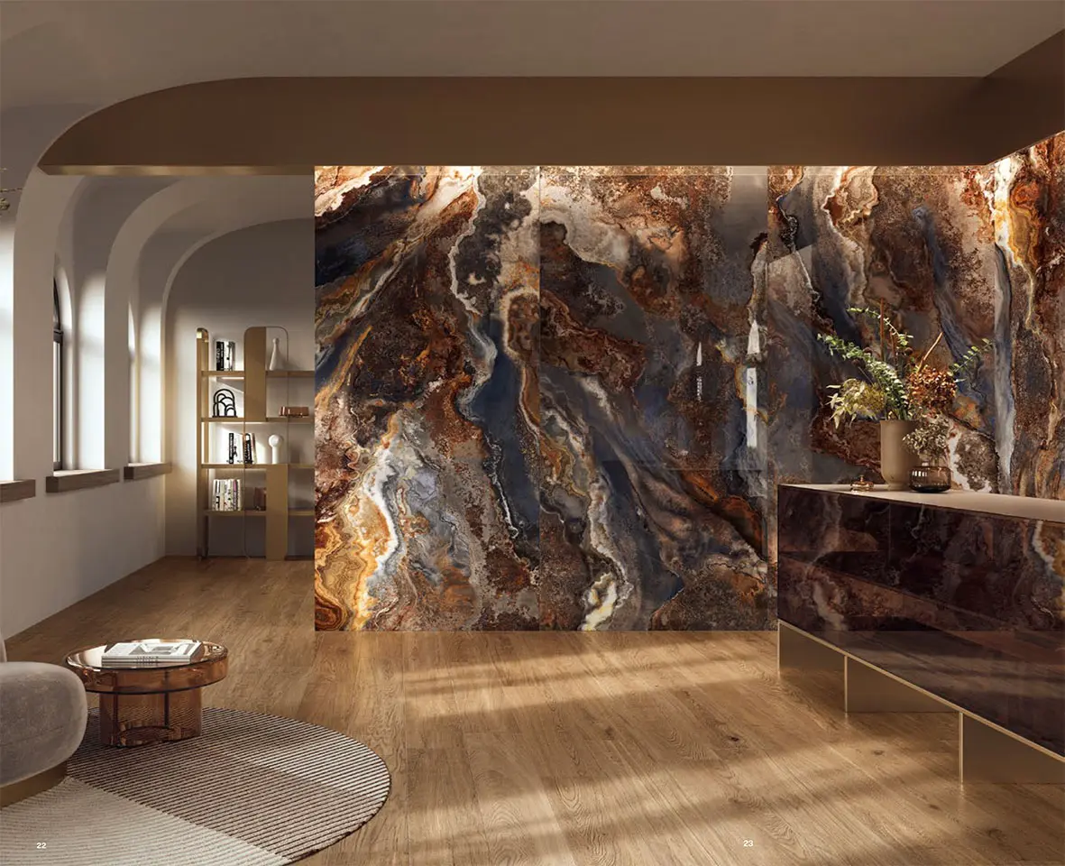Deze XXL‑tegels van combineren een luxueuze uitstraling met uitzonderlijke technische prestaties, ideaal voor zowel residentiële als commerciële projecten. Dankzij de grote formaten ontstaat een naadloze, moderne look met minimale voegen en maximale esthetische impact. Deze collectie biedt een brede keuze aan marmer-, steen- en betonlooks, perfect voor wie een hoogwaardige en tijdloze afwerking zoekt.